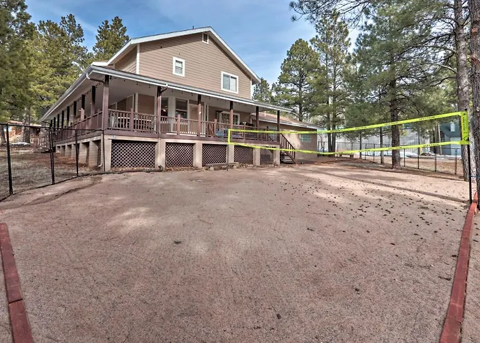 La villa Sand Volleyball And Deck Munds Park Getaway! te proporcionará nevera, horno y menaje de cocina en la cocina bien equipada. Los huéspedes tienen la opción de comer en el restaurante Pinewood Bar & Grill, que está a tan solo 1 km. El aeropuerto más cercano es Flagstaff Pulliam, situado a 30 km de esta casa de vacaciones.